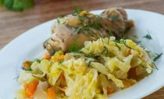 - مرغ. فیله را در آب نمک همراه با برگ بو، فلفل و شوید بجوشانید. سرد کنید و به الیاف نازک بریزید.