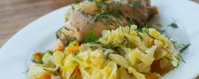 - کلم، پیاز، هویج را در یک کاسه بریزید، نمک، برگ بو را اضافه کنید، در روغن نباتی بریزید، مخلوط کنید و در کیسه پخت قرار دهید، گوشت ترشی شده و تکه های کره را روی آن قرار دهید، کیسه را از دو طرف گره بزنید و روی یک ورقه پخت قرار دهید.