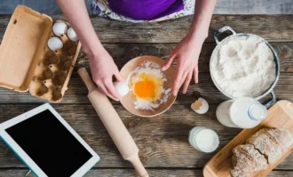 - آرد و آرد سوخاری را جداگانه روی بشقاب های صاف قرار دهید.