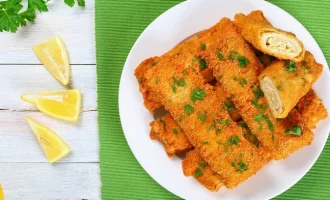 - می توانید ماهی خال مخالی را تازه یا منجمد مصرف کنید. اگر گزینه دوم را ترجیح می دهید، ماهی باید ذوب شود. سپس سر را بردارید، آن را بیرون بیاورید، آن را کاملا بشویید و به قطعات برش دهید. پیازها را پوست بگیرید، به صورت حلقه یا نیم حلقه برش دهید.